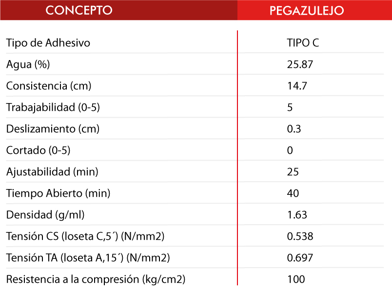 Se emplea como adhesivo para pisos, porcelanatos de alta absorción de agua con gran ventaja sobre los productos económicos que existen en el mercado.